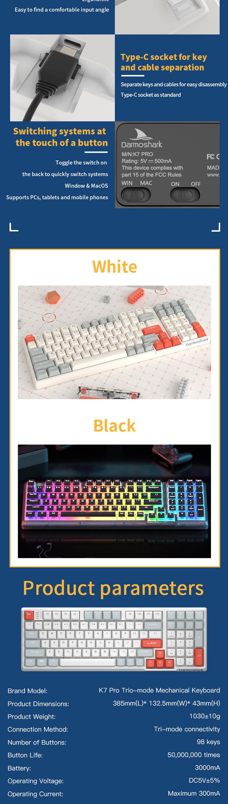 1. Bluetooth 5.0/2.4G Wireless/ Wired Trio-mode