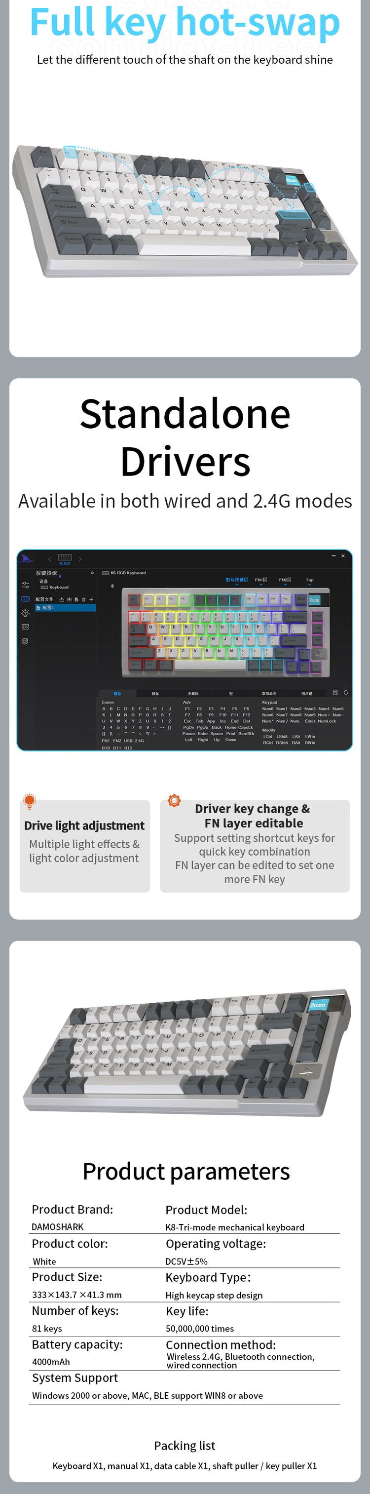 1. Bluetooth 5.0/2.4G Wireless/ Wired Trio-mode