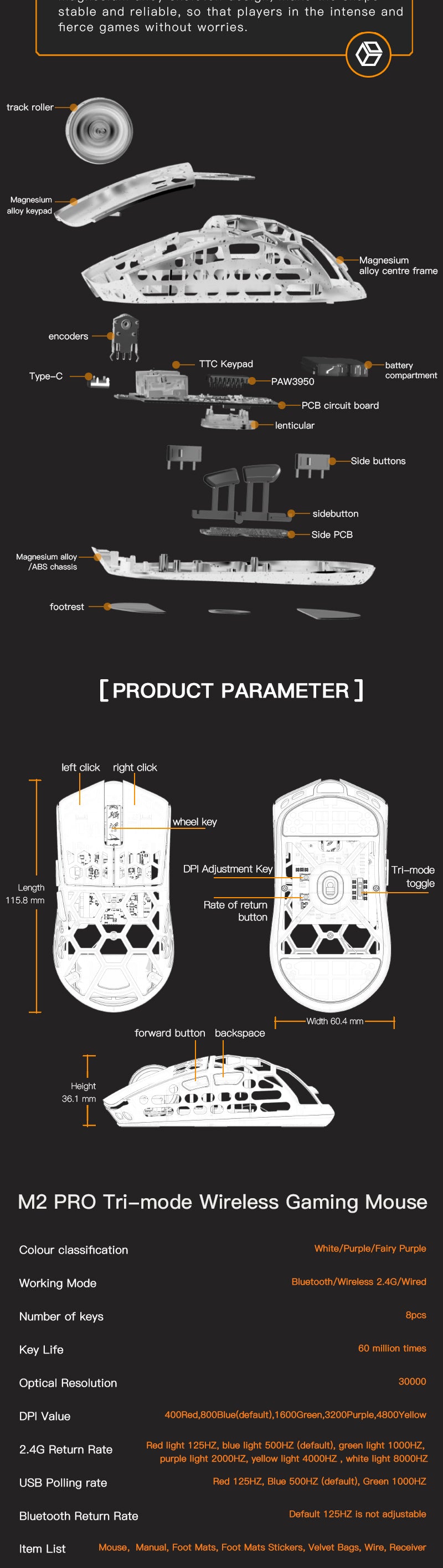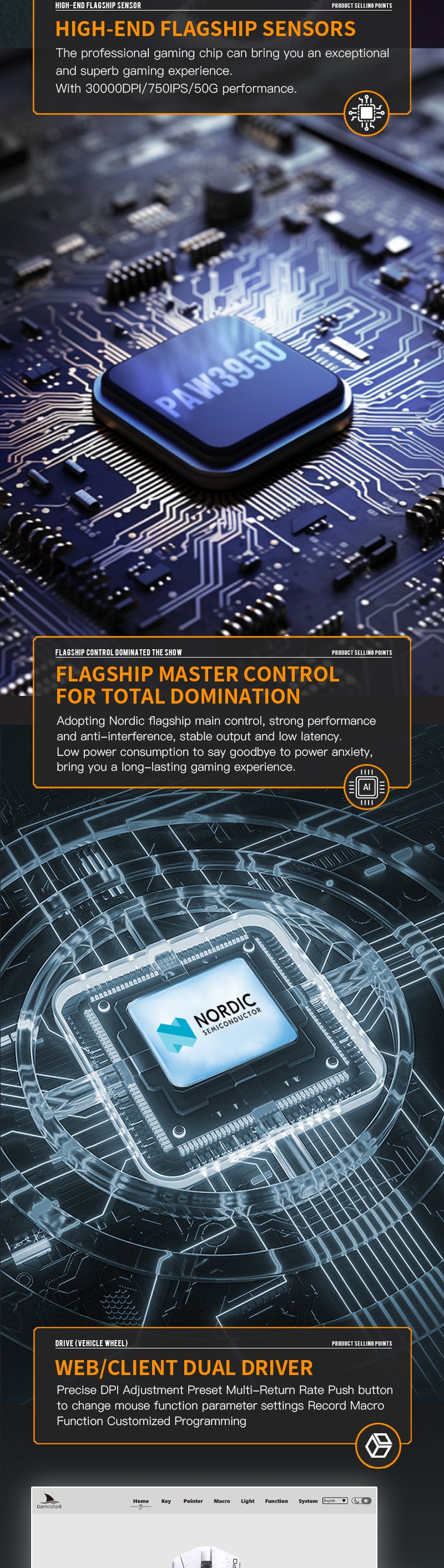 4. Up to 30000dpi, 750IPS, 50g Acceleration