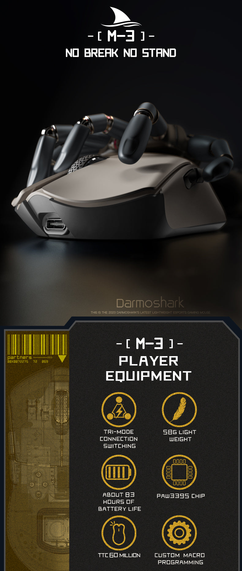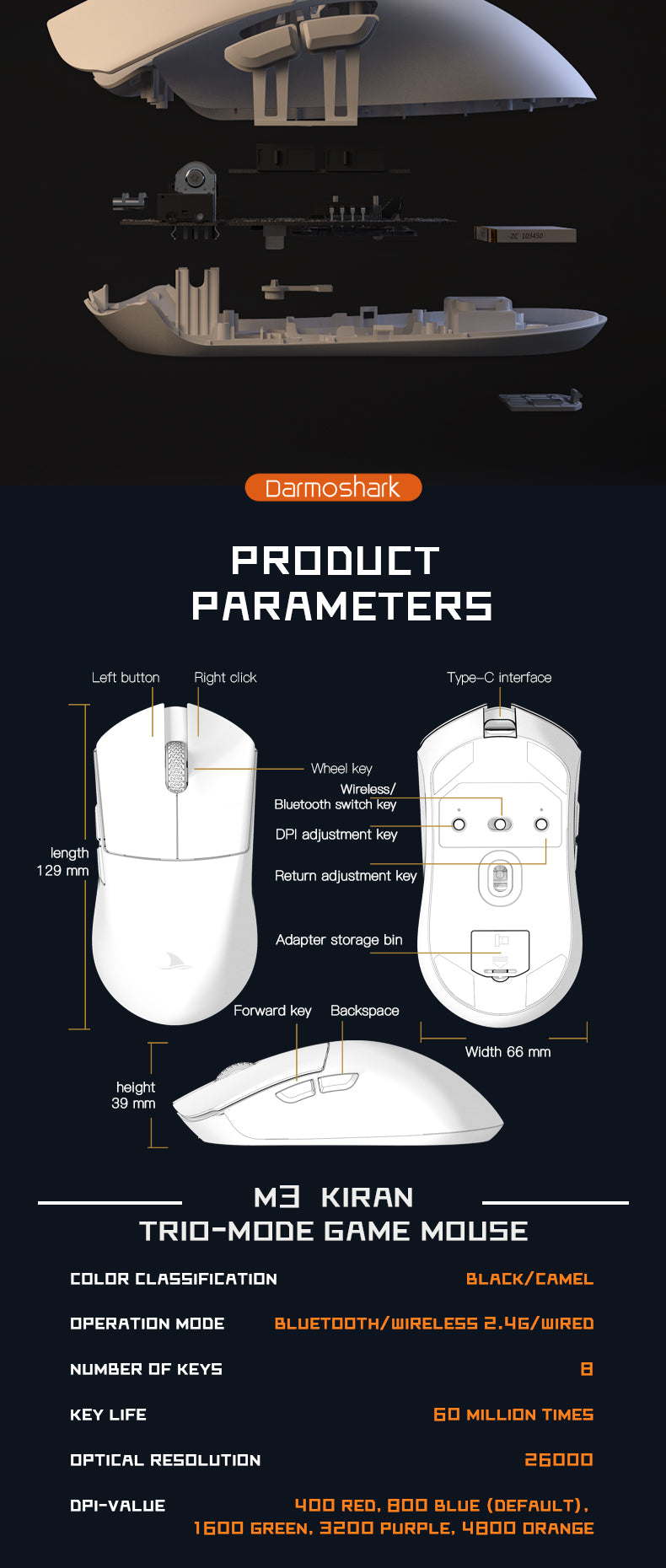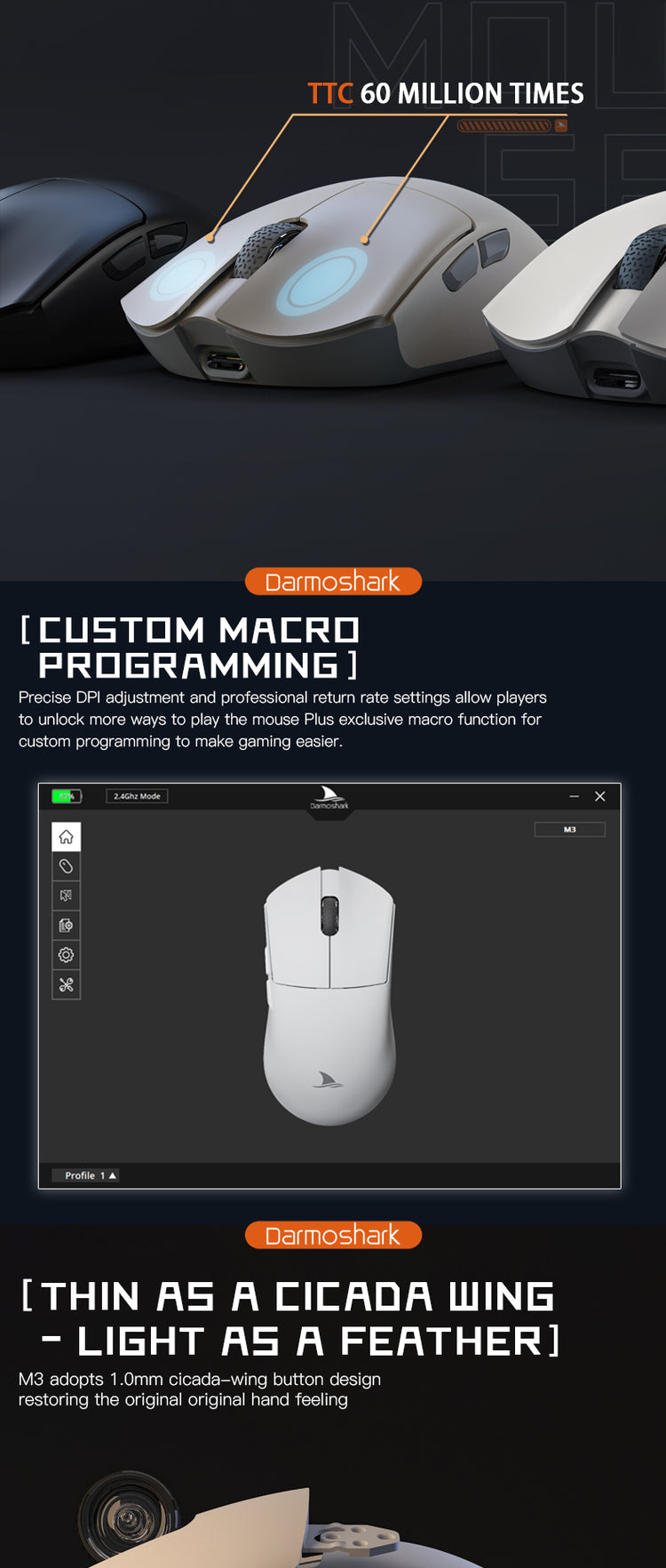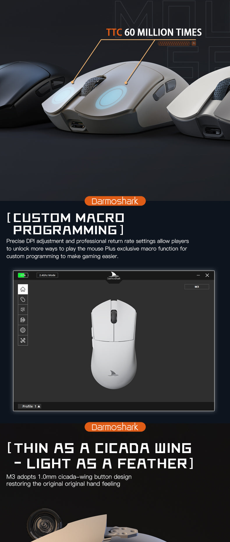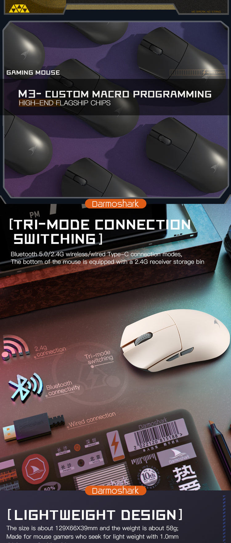 Darmoshark M3 KIRAN Trio-mode Light-weight Gaming Mouse