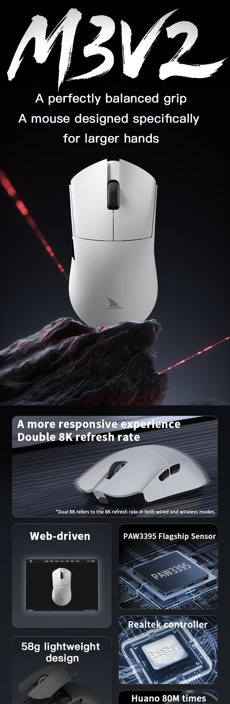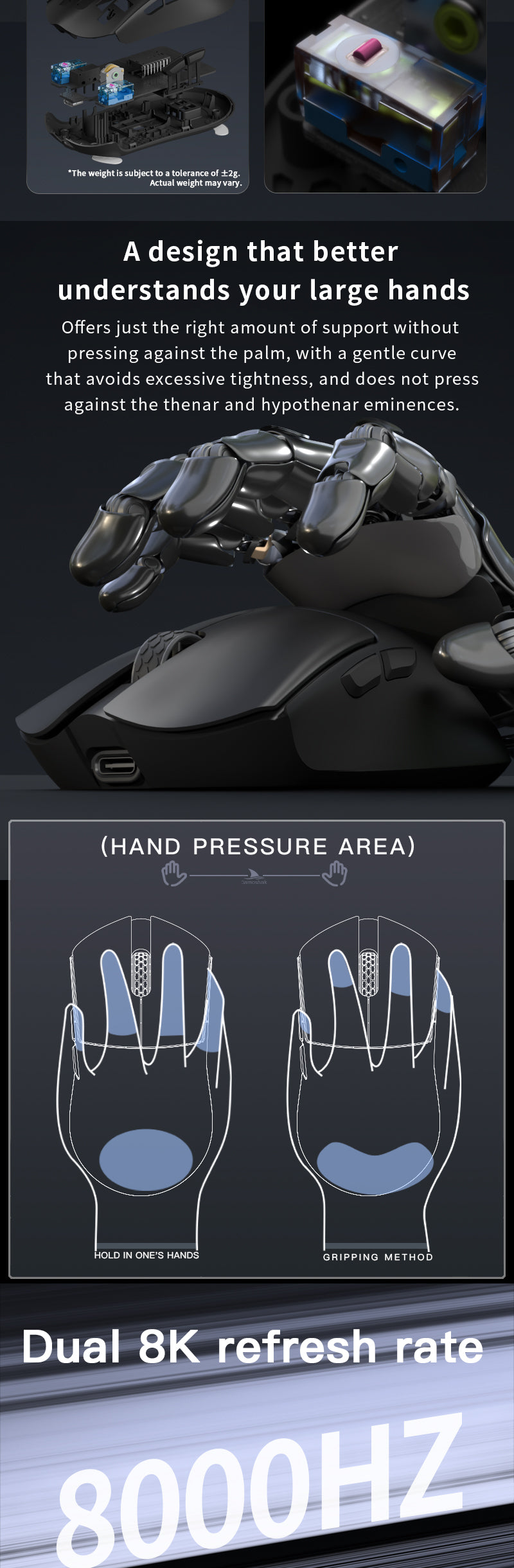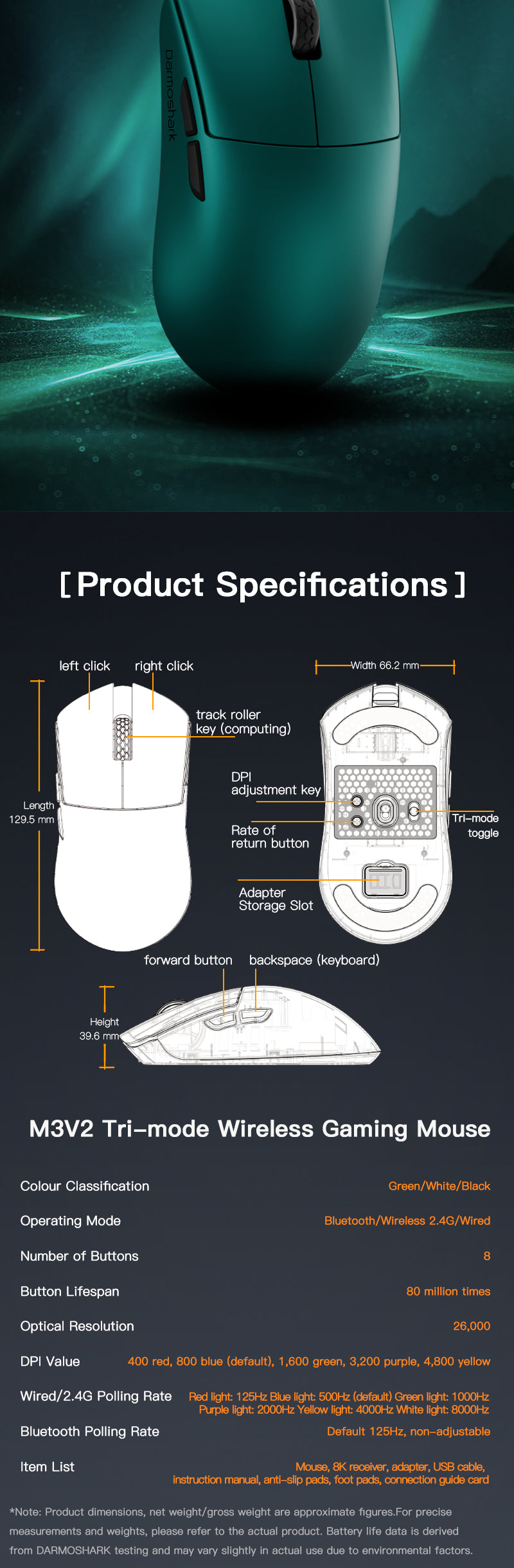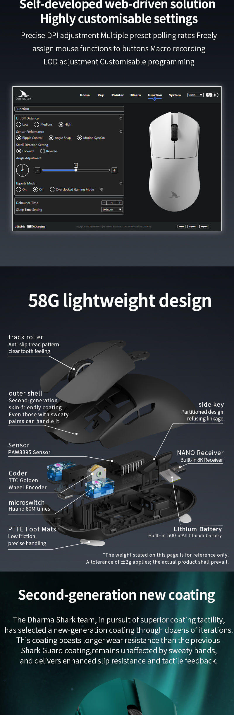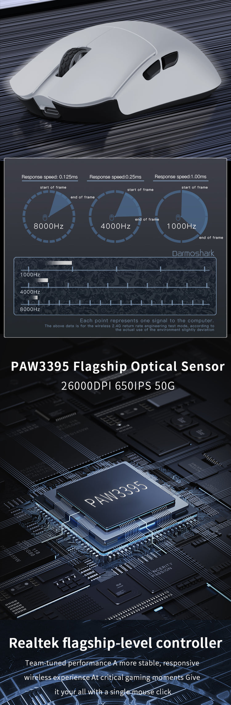 4. Up to 26000dpi, 650IPS, 50g Acceleration