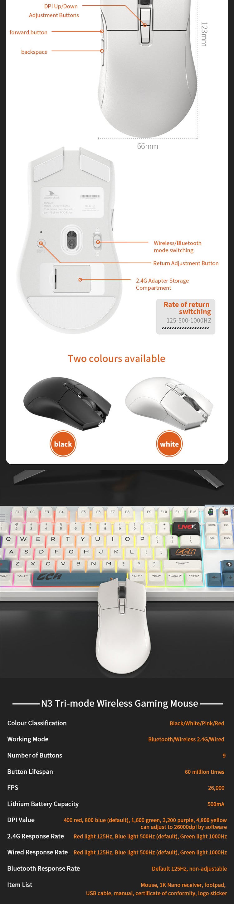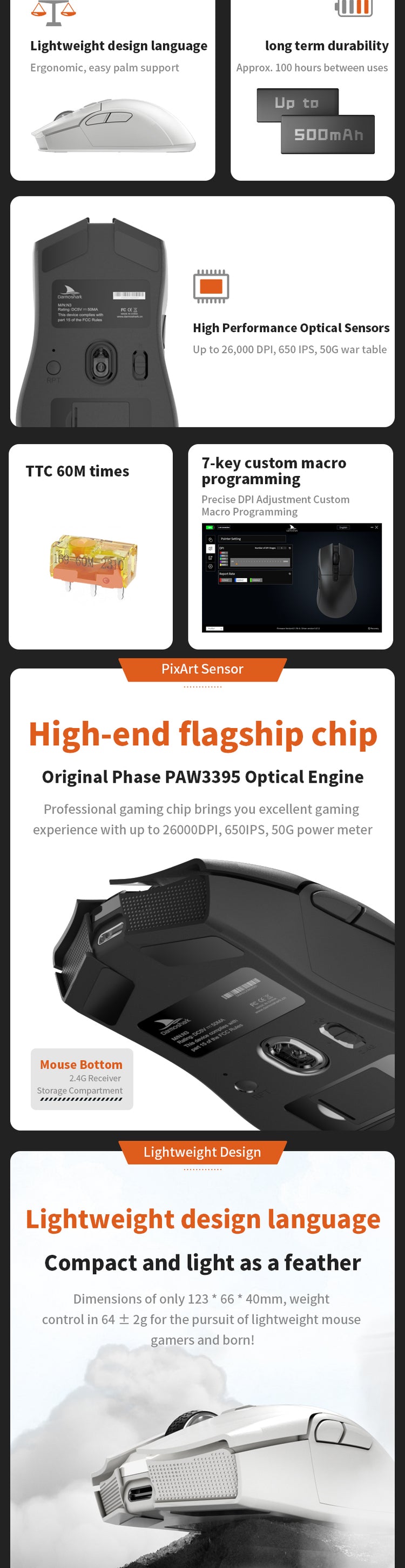 4. Up to 26000dpi, 650IPS, 50g Acceleration