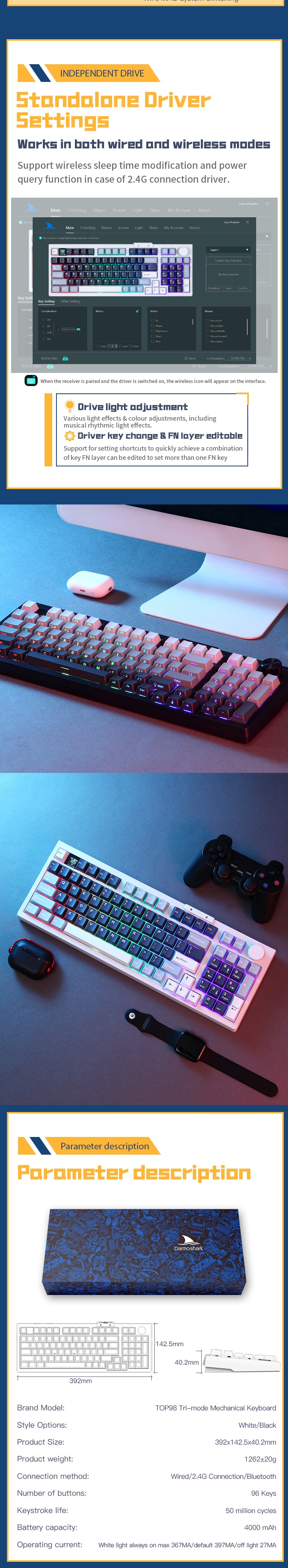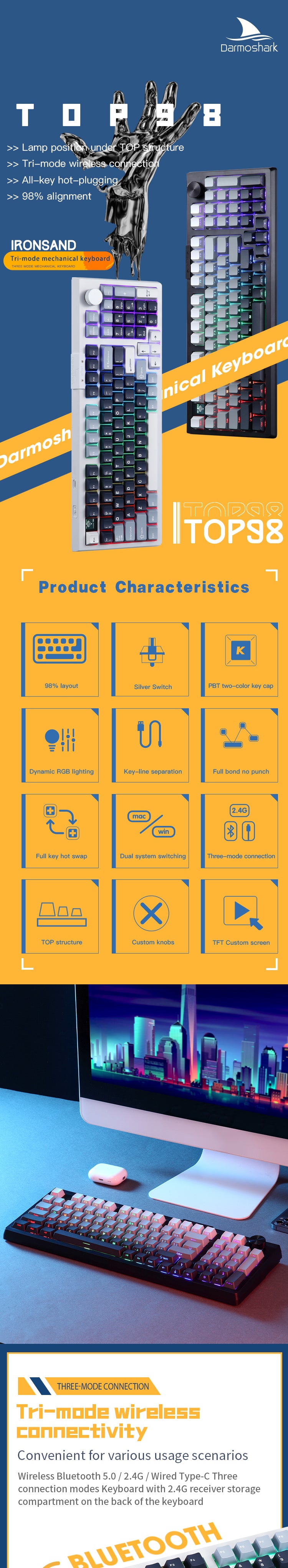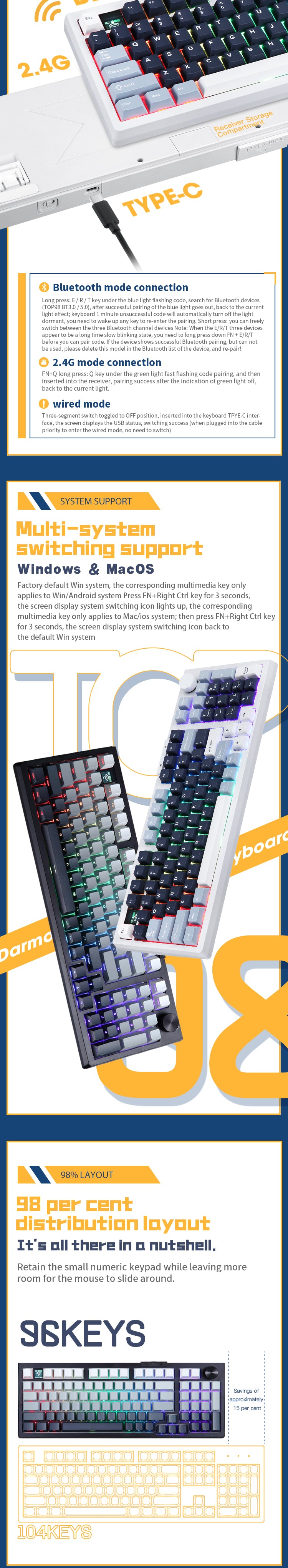 1. Bluetooth 5.0/2.4G Wireless/ Wired Trio-mode